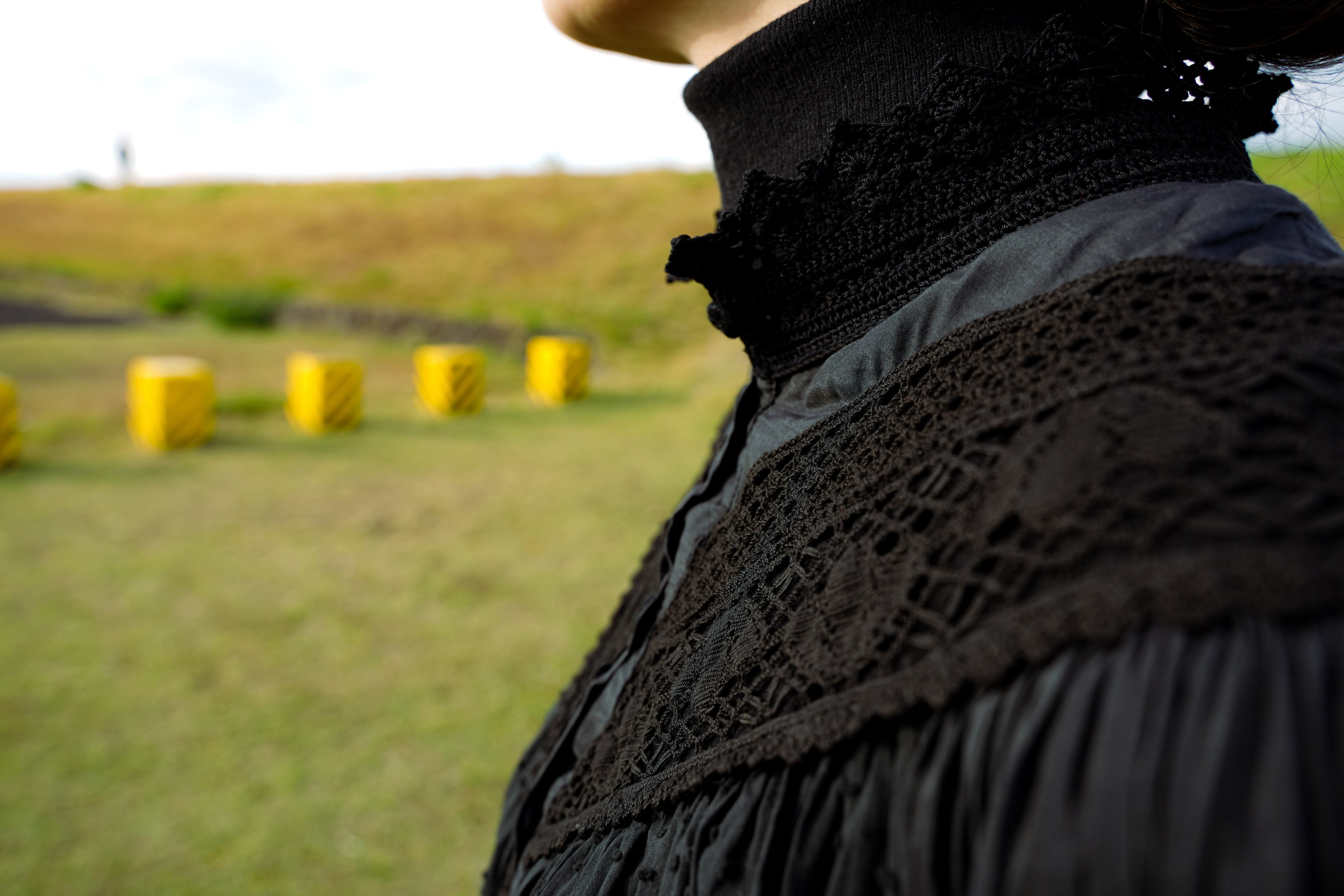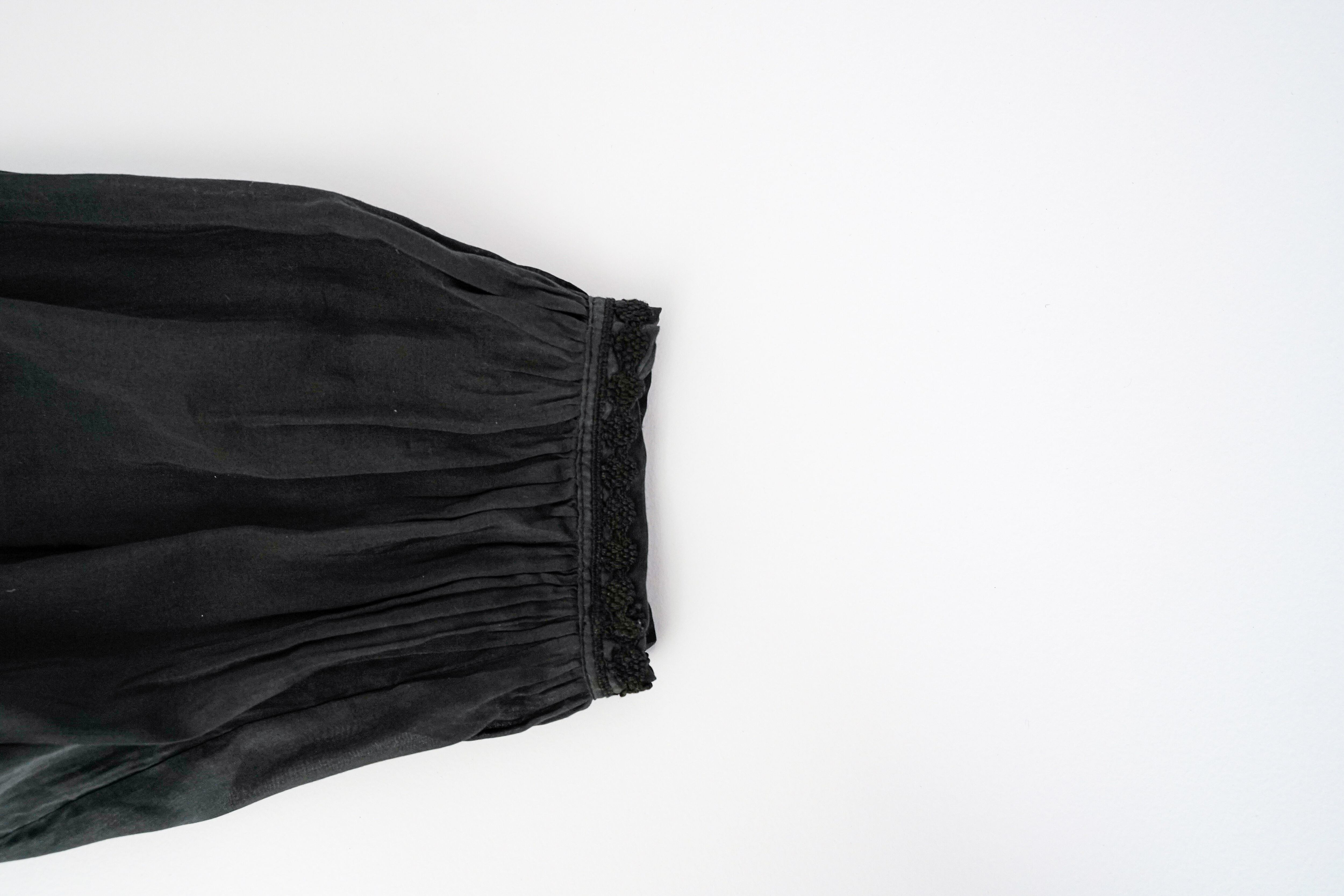 その空間に入ると大好きなforte_forteがズラーっとたくさん並んでいて可愛すぎでとっても興奮しました!何度見ても気になった3点を選びました。その1はこちらのシャツです。レースの襟が甘いかなぁと思いましたが着てみるとしっくりです。甘くなく程よポイントになります。肩はラグランになっていてギャザーがたっぷりありますが生地が柔らかいためボリュームが出過ぎずストンとしていてかわいいです。フロントは下までボタンが付いていて閉じでも開けても着用可能です。後ろ姿もとってもかわいいので写真にてぜひご覧下さいませ。