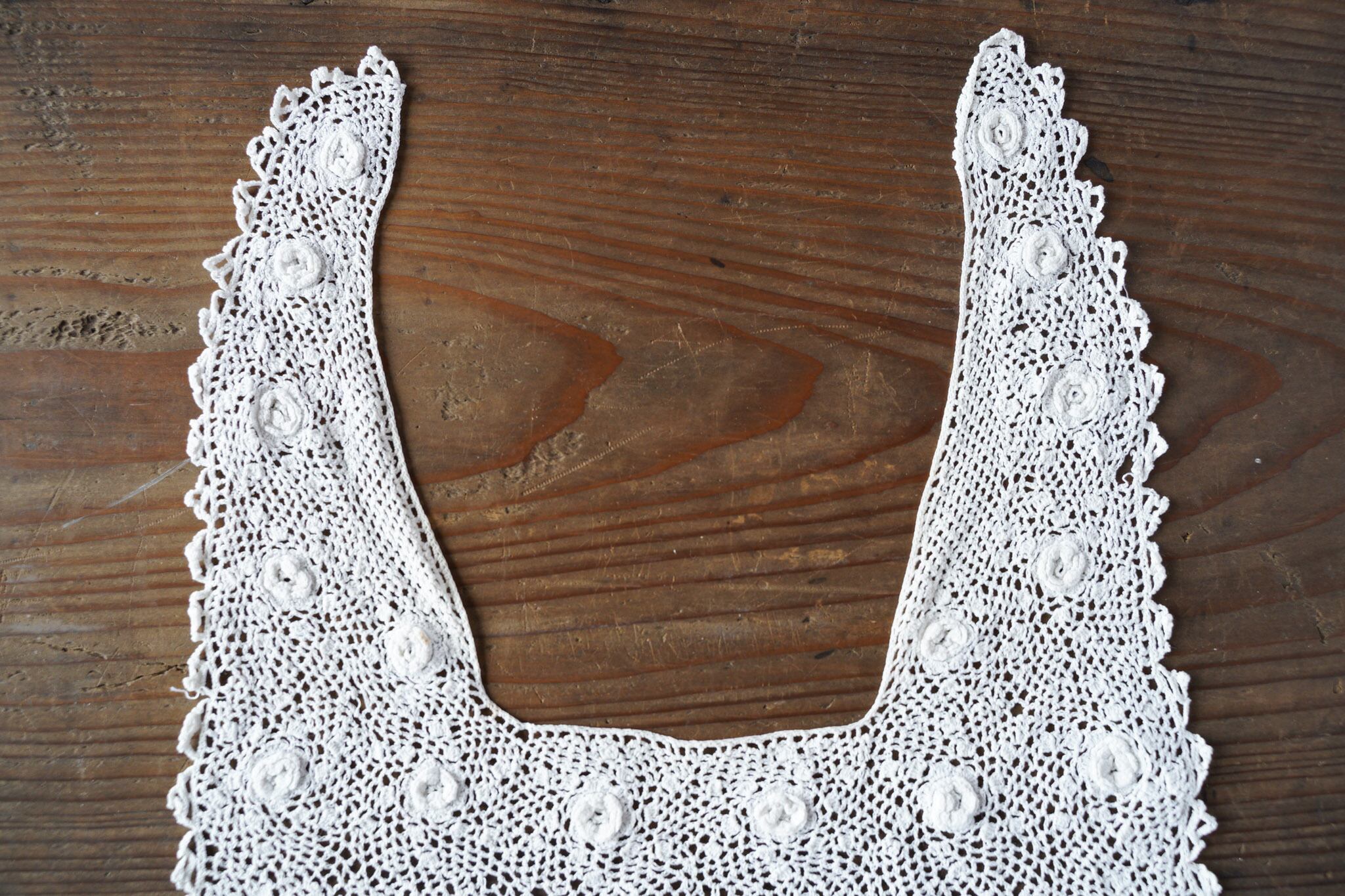 セーラーカラーになっているコットンかぎ針編みのつけ襟。ボタンや紐がついていなく、肩に掛けたり・フロントをお好きなブローチで留めてお使いいただけます。ノーカラーのブラウスやTシャツに付けてみるとお気に入りの服をいつもと雰囲気を変えて楽しむ事ができます。ご質問がございましたらチャットよりお気軽にお問合せ下さいませ。